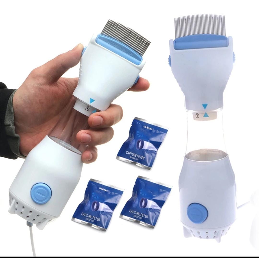 Te presento la aspiradora eléctrica de piojos y liendres, una tecnología que succiona directamente los parásitos sin dañar el cuero cabelludo.”