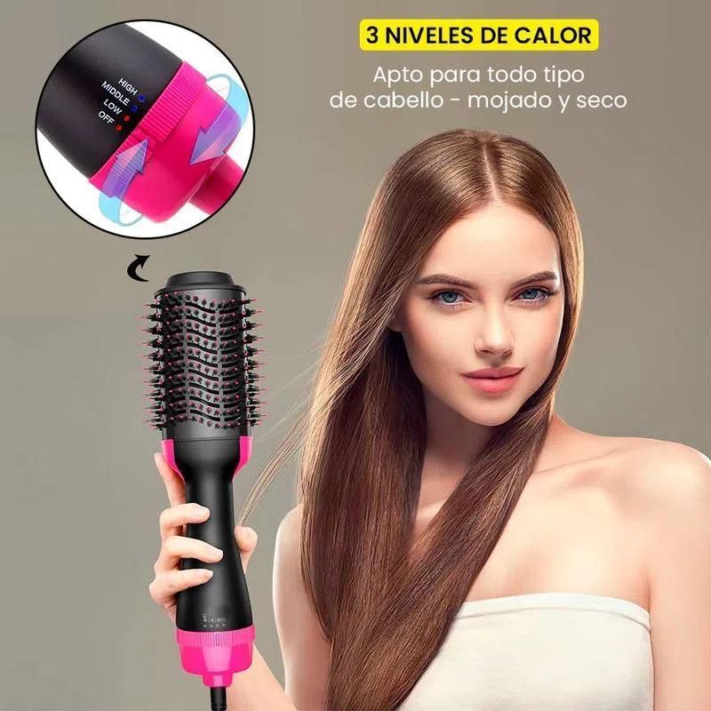 CEPILLO "ONE STEP" 3 EN 1 (3000 W)🔸 A la vez que cepillas tu cabello lo secas dejándolo liso u ondulado a elección.🔸 Sella las cutículas, reduce las puntas abiertas y los nudos.🔸 Revestimiento de cerámica que protege tu cabello del sobre peinado.🔸 Tres niveles de aire caliente: bajo, medio y alto🔸 Potencia: 3000w.🔸 Colores: morado y rosado.
