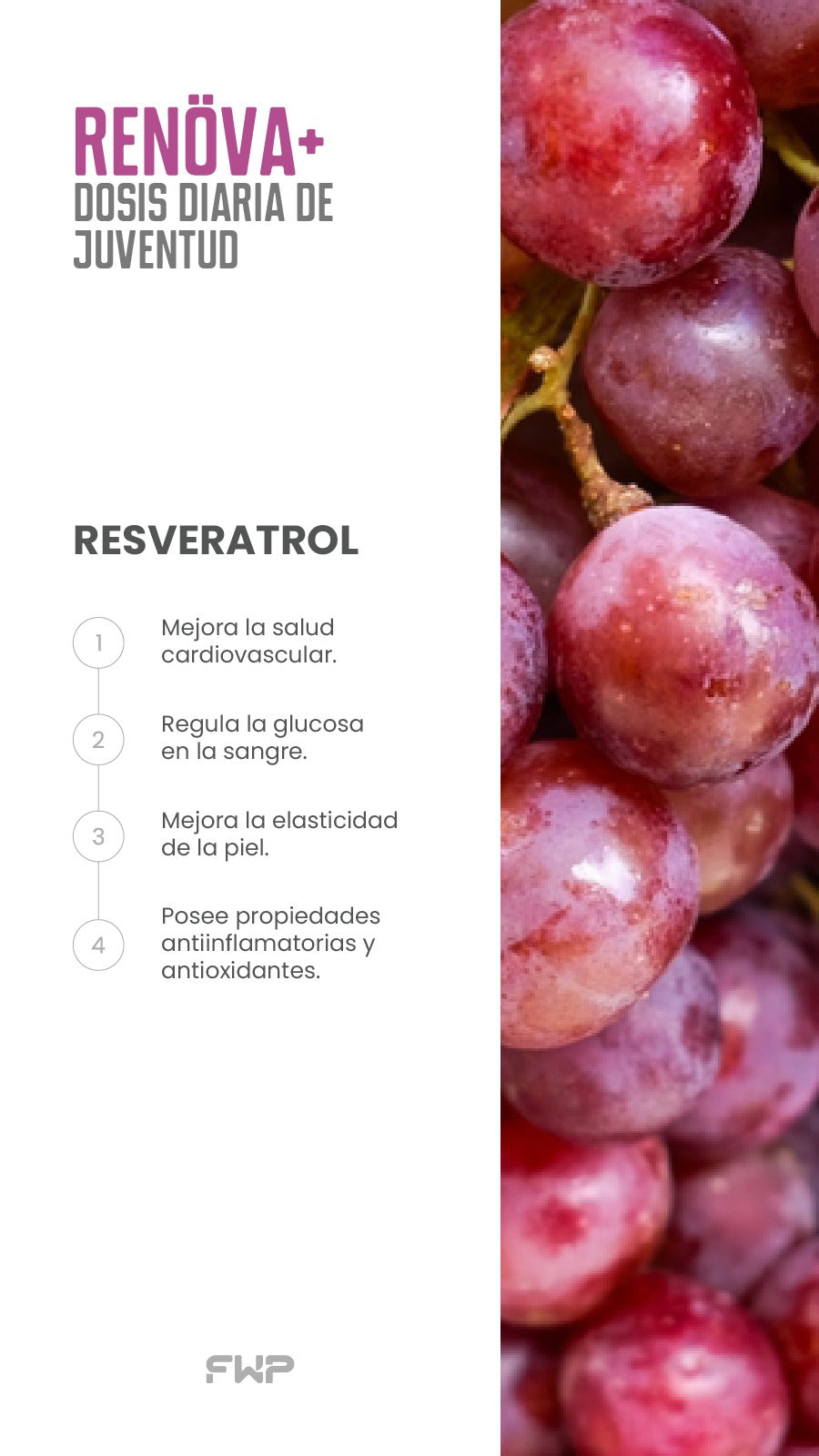 ✔️ Antioxidante potente: El resveratrol combate el envejecimiento celular.