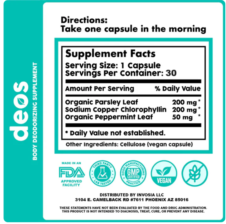 DEOS IDESODORANTE INTERNO CORPORAL 30 CAPSULAS