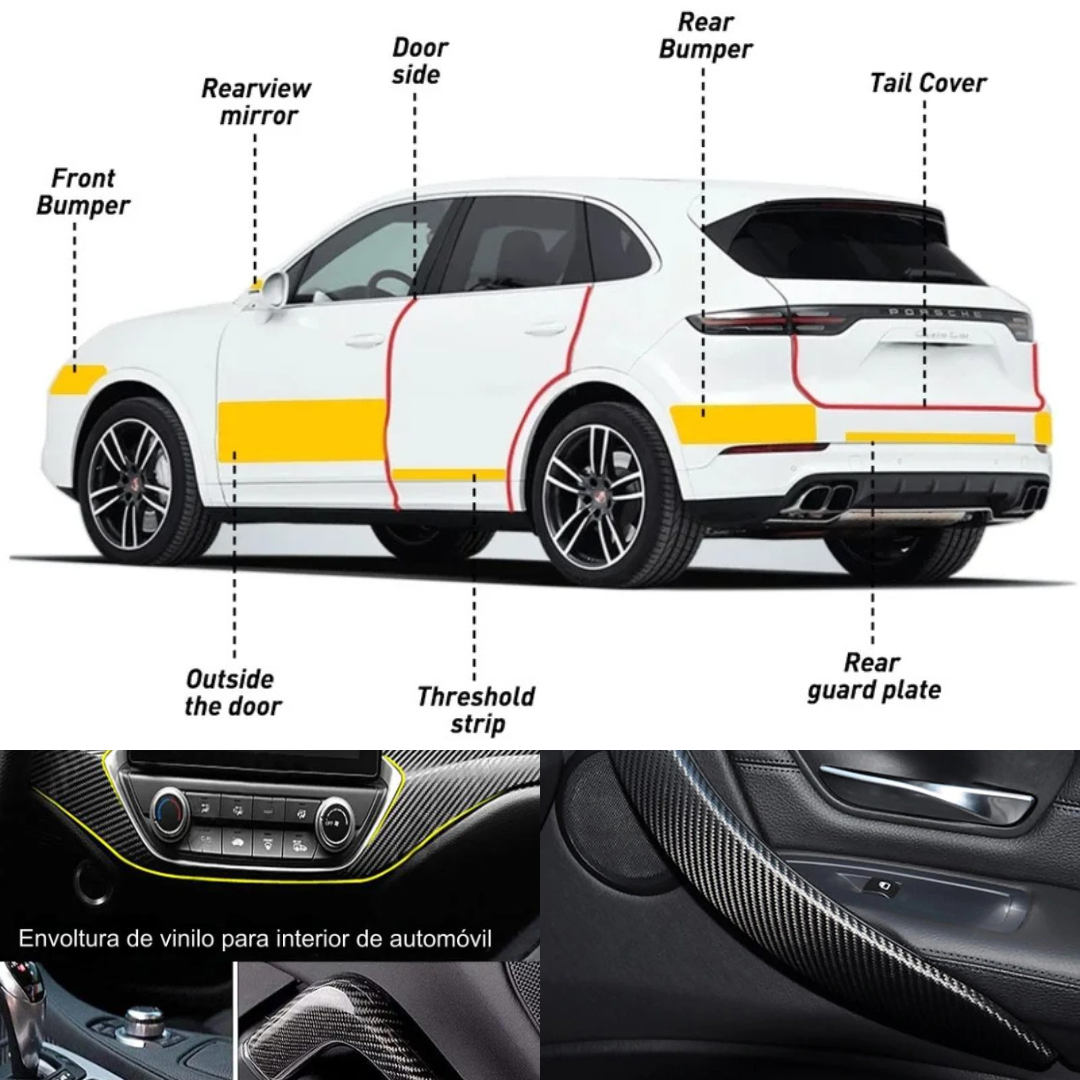 Por ello te presentamos nuestro Tira de fibra de carbono no solo mejoran la apariencia del carro, sino que también protegen la pintura original. Los pequeños rasguños y marcas que solían ser una molestia